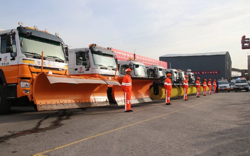 全面检修设备,确保随时投用。自10月中旬起,中心组织技术人员对除雪车、撒布机、推雪板、装载机等专用机械设备进行全面检修保养,重点排查发动机、制动系统及除雪装置等关键部件,建立设备管理台账,详细记录保养周期和运行状态。同时,为作业车辆配备防滑链、铁锹等应急工具,确保所有设备处于最佳待命状态,能够随时投入除雪防滑作业。