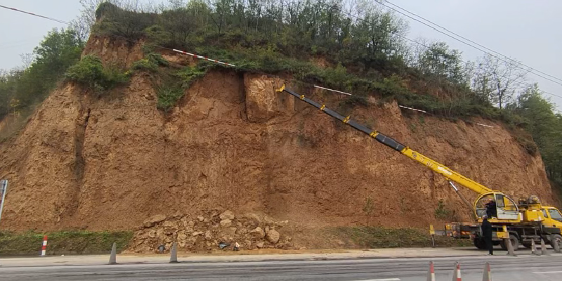 受持续降雨影响,G244线灵台段部分高边坡土壤含水量饱和,稳定性显著下降。平凉公路发展中心灵台公路段养护人员在例行巡查中,及时发现一处重大安全隐患:路侧崖体土块悬空,摇摇欲坠,严重威胁下方车辆与行人安全。