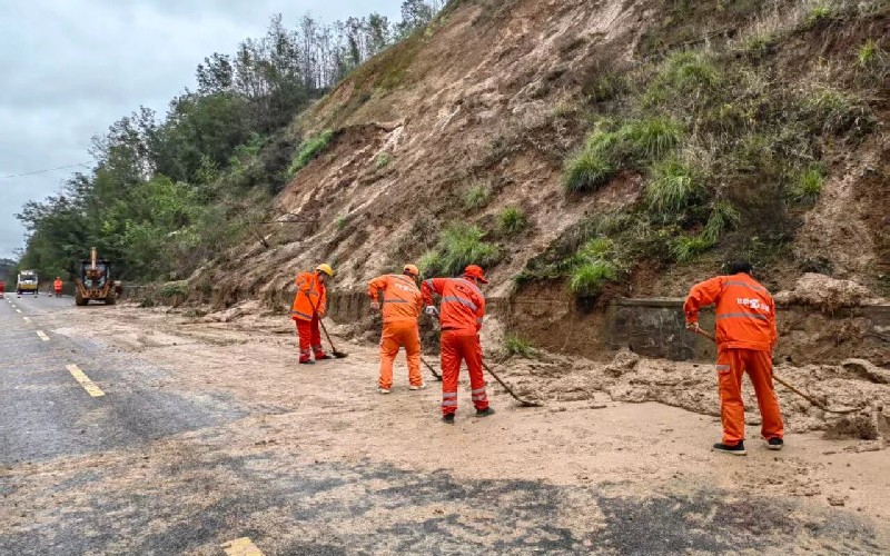 机械人力协同,抢通保畅“加速度”。处置现场,挖掘机挥舞铁臂清理路面积淤与滑塌土石,运输车辆往来穿梭清运淤泥杂物。在机械难以触及的边角区域,养护工人身着橘色工装,手持铁锹、扫帚细致清理每一处淤泥。雨水浸透衣裤,泥浆沾满鞋袜,他们仍不停歇,只为尽早恢复道路安全通行。