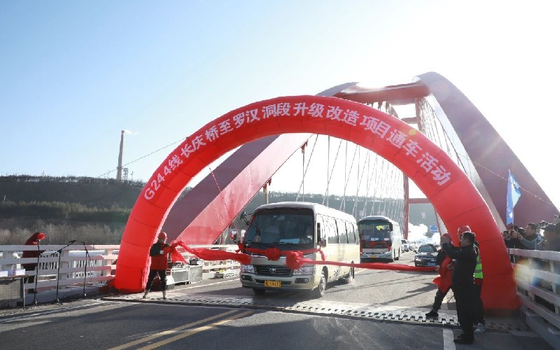 2025年12月25日,泾河两岸,红绸如练,礼炮声震彻河谷。在平凉与庆阳两地人民的共同见证下,G244线长庆桥至罗汉洞段升级改造项目控制性工程——长庆桥正式建成通车。这座全长310.6米的现代化桥梁,以其148米主跨的提篮式钢箱网状系杆拱设计,宛如展翅的蝴蝶凌空飞渡,成为连接甘陕两省的新地标。