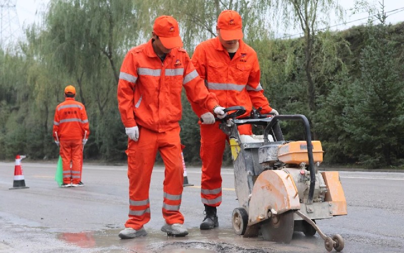 精准施策,高效修补路面病害。针对经历夏季高温、雨水冲刷等造成的路面裂缝、坑槽等病害,崇信公路段组织精干力量,调配专业设备,全面展开精细化修补作业。严格按照“圆洞方补、斜洞正补”的工艺要求,划线、切割、清底、摊铺、压实,每一道工序都一丝不苟,确保修补后的路面平整密实,有效延长道路使用寿命,提升行车舒适度。共计处置坑槽19处。