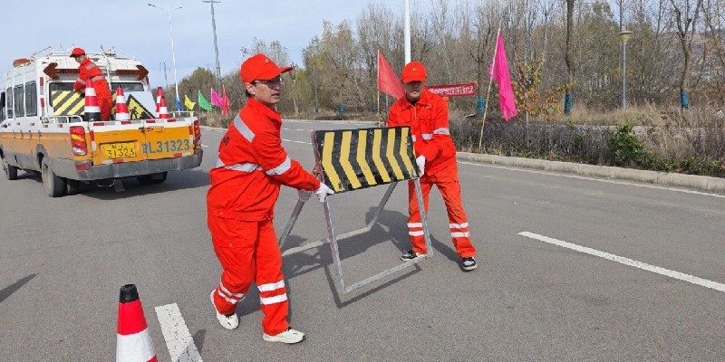 现场作业人员操作严谨、配合默契。锥形桶按标线刻度精准排列,标志标牌架设位置合理、指向清晰,充分体现出日常训练中积累的标准化、规范化水平。在有限时间内,各队伍高效完成作业区封闭布设,展现出良好的应急实战能力。